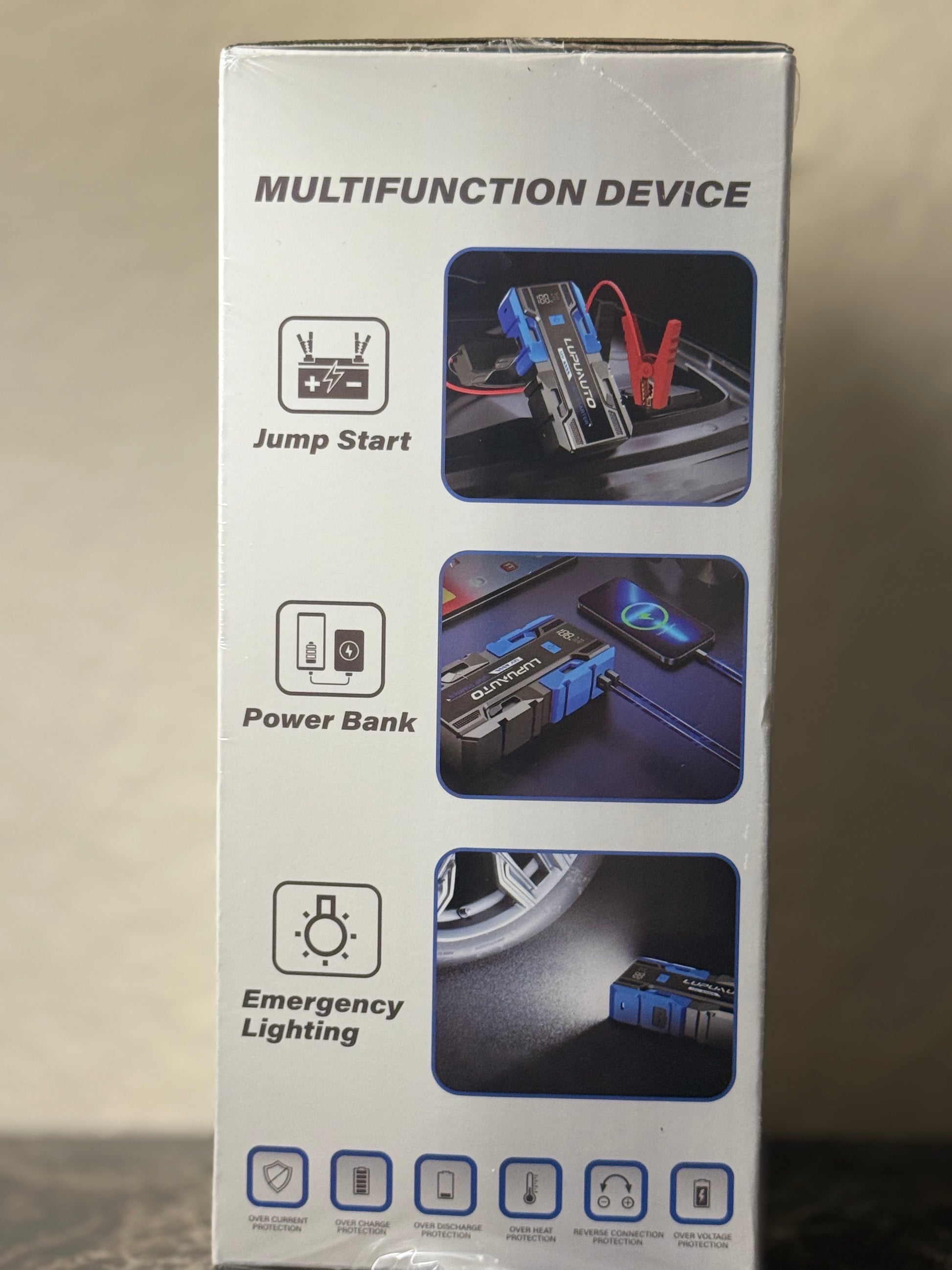 - Fast charging:3000A car jump starter battery pack doubles as a portable power bank. Dual USB-A ports (up to 5V) charge your multiple devices at the same time, such as cell phones, tablets, car air compressors and so on. USB-C 5V input port for faster self-charging. Whether it's car emergency or daily charging, the car battery charger jump starter is ready to provide strong power anytime and anywhere, making it a perfect choice for travel or camping.