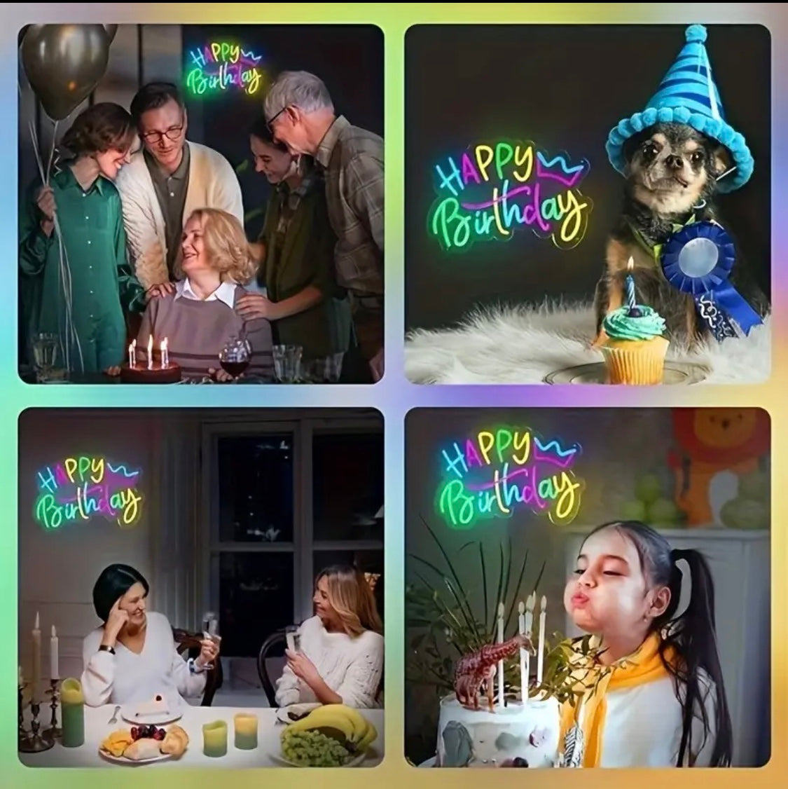 Happy Birthday Neon Sign for Birthday Parties, Colorful Happy Birthday Light Sign, LED Neon Sign with Adjustable Switch for Wall Decoration
